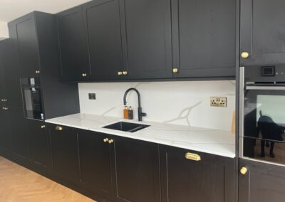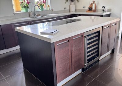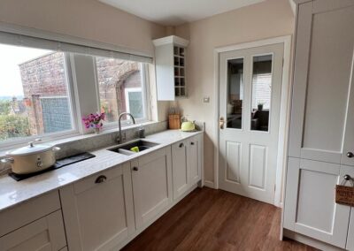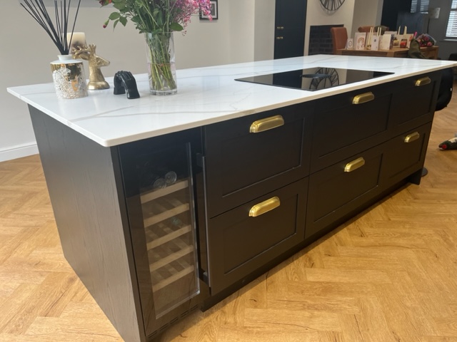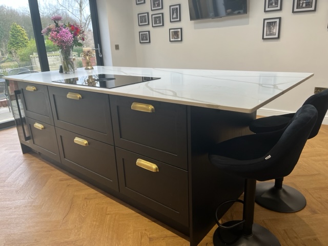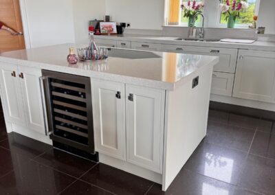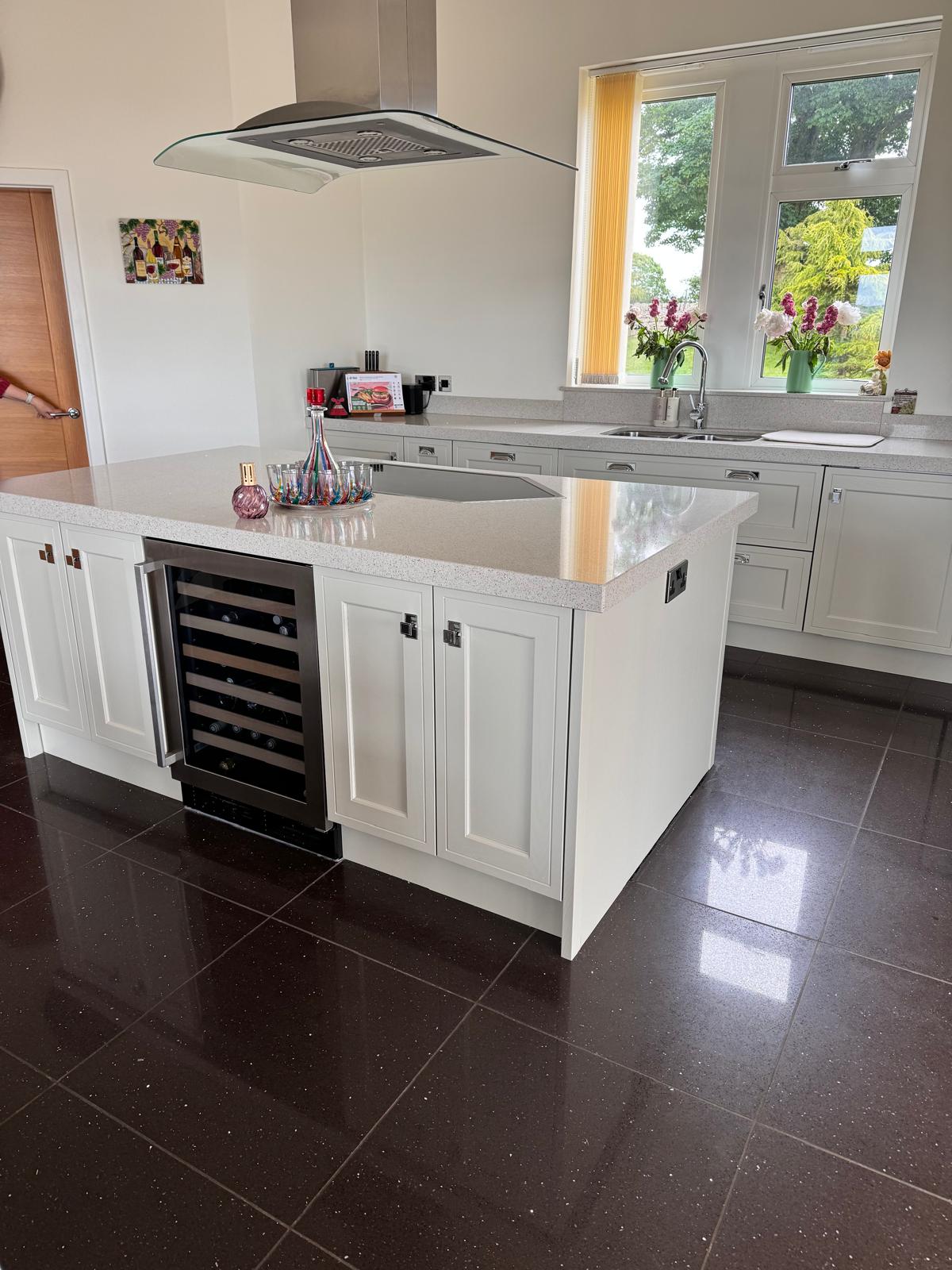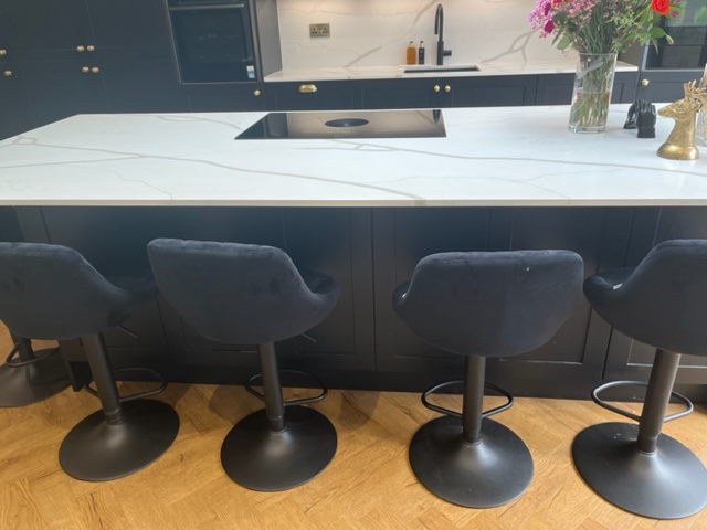 Our customer had a fabulous new extention to create a light and airy new kitchen. The finished product looks absolutely fabulous! Porcelain doors with Carrara Quartz worktops, a fabulous new breakfast bar area and drinks area. A Quooker Flex Tap with a belfast sink gives this kitchen a classic look. Photos kindly supplied by our customer.